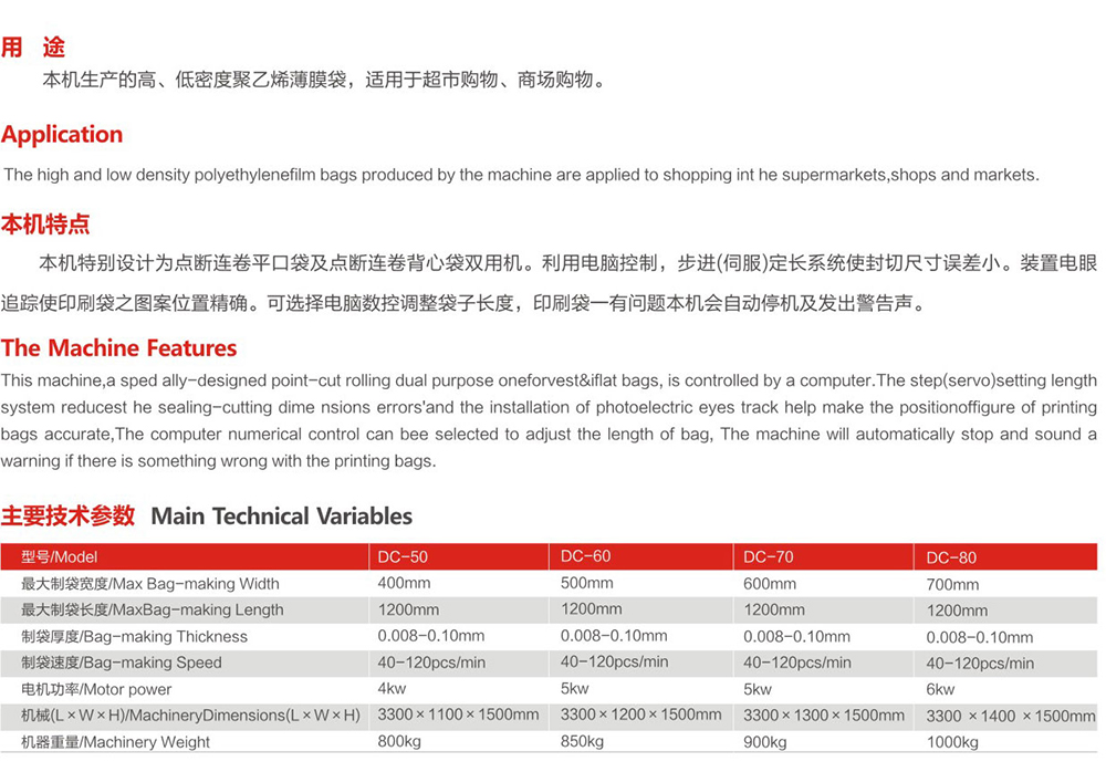 DC-500-800微電腦控制高速連卷平口袋-背心袋制袋機